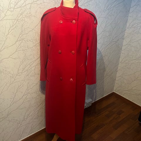 Har du lyst på en kåpe i god kvalitet og med plass til varm genser under. Selger denne flotte kåpen nesten ubrukt. Kult snitt med brede skuldre. Hel lengde 121 cm. Den er str 44, men den kan nok også brukes om du bruker 40-42