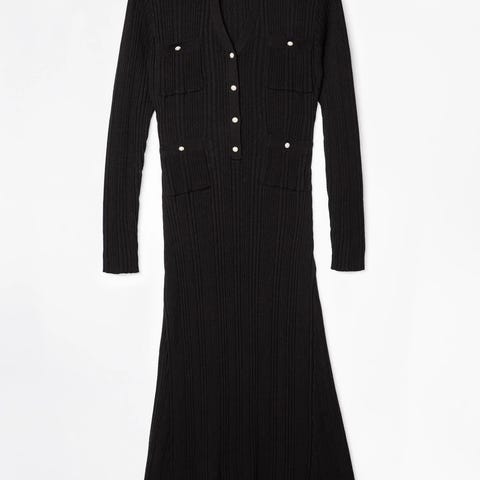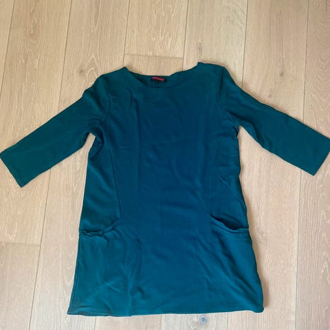 Langermet kjole fra Indiska i str S, i 100% viskose. Stoffet er streachy, mykt og veldig behagelig. Fin fasong. Toner er svart, grå og hvit.