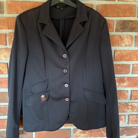 Kingsland Dressur stevnejakke for dame i størrelse 40. Jakken er i svart behagelig softball, lommeklaffer i svart fløyel eller velour. Liten I str, vil si den tilsvarer maks 38. Tror nok den ville passet meget bra til en rytter mellom 36-38.