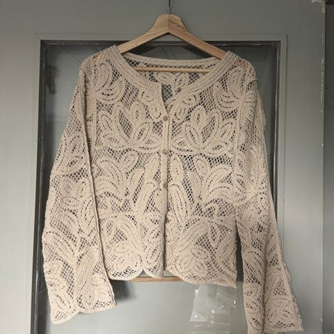 FLOTT»BLÅ/GRÅ MØNSTRET CARDIGAN», STR. 38