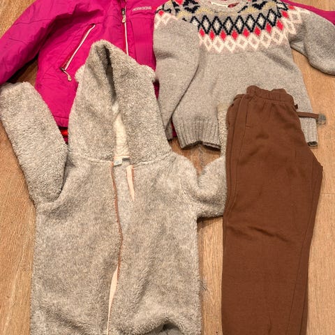 Norheim skidress, foret Didrikson regntøy (brukt et par ganger), Dikrikson regntøy og div klær som bukser, skjørt, kjoler, genser selges samlet kl 400