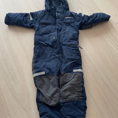 Didriksons Barne Dress i størrelse 110, farge blå, designet for unisex barn. Dressen har hette og forsterkede områder på knærne. Egnet for utendørs bruk.