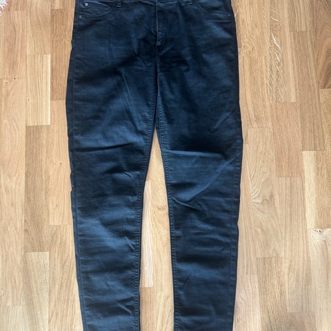 Five Units bukse i modell Jolie, str 25. Stor i størrelsen, passer str 34/36. Pent brukt, uten synlig bruksslitasje. Farge Black coated, svart med coated effekt.