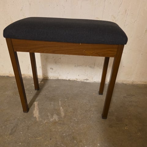 Fin vintage pall i tre med ullstoff. Mål på bilder. Pallen er i fin stand. Noen bruksmerker på bena. Se bilder.