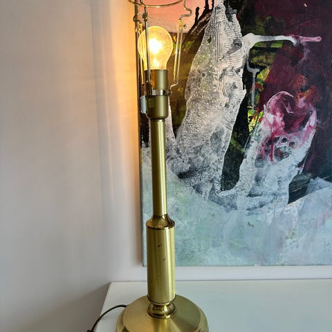Liten vegglampe i messing produsert på 1970 tallet. Mål: Høyde 15 cm. Dybde 117cm. Max 40 W. Merket: Fred L. Thiesen. Type 01. Litt alderslitasje.