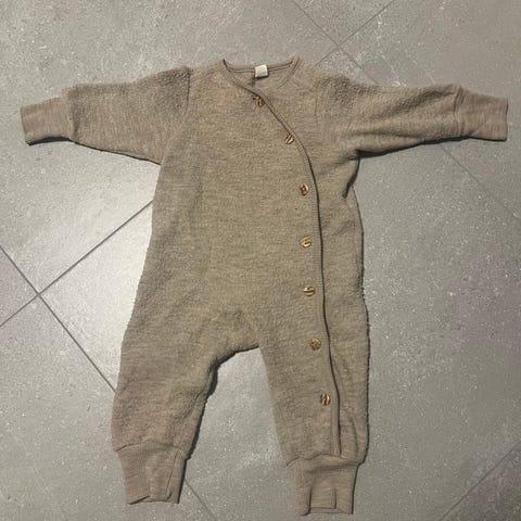 3) Grønn body fra MeMini: 50% ull / 50% tencil. Litt falmet foran. Ingen hull eller annet.