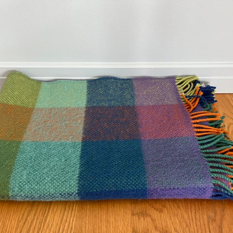 Vevet i 100% naturfarget norsk ull og laget i en praktisk størrelse på 85×130 cm – akkurat passe til både små og store øyeblikk.