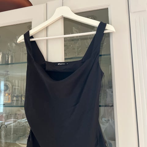 Zara Tanktopp i svart farge, størrelse M. Laget av ribbestrikket materiale. Veldig lite brukt.
