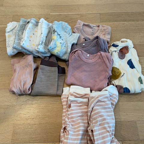 Stor klespakke i neutrale farger - mye hvit - lett å vaske.