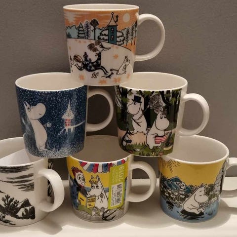 4 krus tegnet av Skavlan for NRK i 2002, 2003 og 2004. Laget av Porsgrund. Plettfri tilstand. Samleobjekter! Selges samlet for 600, enkeltvis for 200.