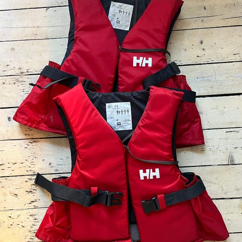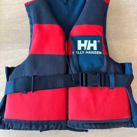 Helly Hansen redningsvest i oransje farge med svart belte og glidelås foran. Vestens materiale er slitesterkt og egnet for sikkerhetsbruk på vann. Designet for å gi flyteevne og sikkerhet ved bruk i vannaktiviteter.