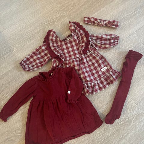3 søde julekjoler, str. 74. Den hvide kjole fra Newbie er str. 80.