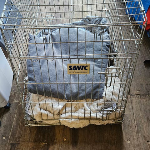 Gir bort et gammelt hundebur. Godt brukt, men kan åpnes og lukkes. Ingen hull, etc.