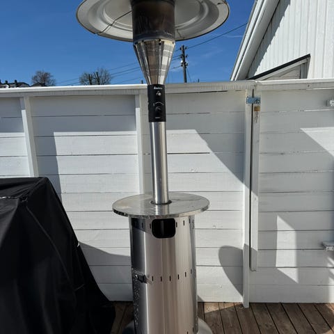 Enders Gasvarmer Terassvarmer med en effekt på 4200 watt. Produktet er svart og designet for oppvarming av uteplasser. Den har en sylinder for gassbeholder som er integrert i enheten, og en kontrollknapp for justering av varmen.