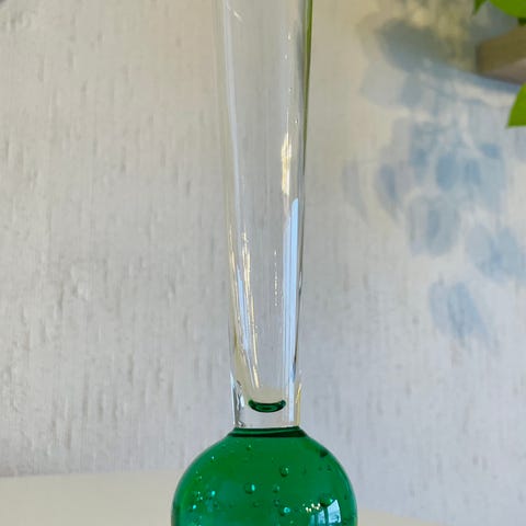 Søkeord: glassvase kunstglassvase glasskunst grønn grønt glass amerikansk amerika blomster blomstervase.