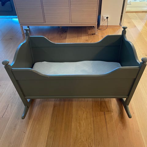 Skjønn tre vugge selges for 1200.