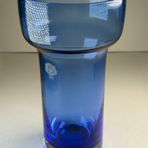Pablo"-vase. Den ble designet av Erkkitapio Siiroinen for det finske selskapet Riihimäen Lasi Oy på 1970-tallet. 20 cm høy. Utrolig fin dyp julerød farge. Sjekk gjerne ut mine andre annonser her 😊