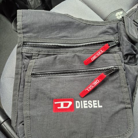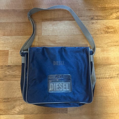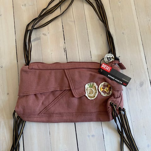 Diesel Dame Veske laget av andre materialer i beige farge. Vesken har en justerbar skulderrem, frontlomme med metallspenne og glidelåslukking på hovedrommet. Innvendig er det flere mindre lommer for organisering. Designet for daglig bruk og passer til dame.