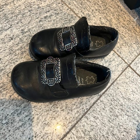 Bunadsko til barn str 28 – svarte med sølvspenne