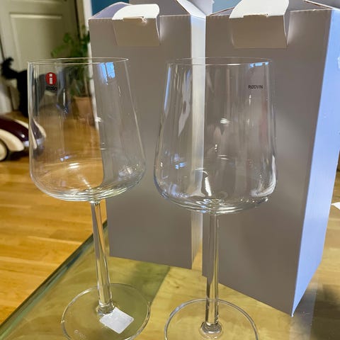 Iittala rødvinsglass i klart glass, 4-pakning. Glassene har stilk og er designet for servering av rødvin. Bare stått i skapet i lang tid og blir ikke brukt