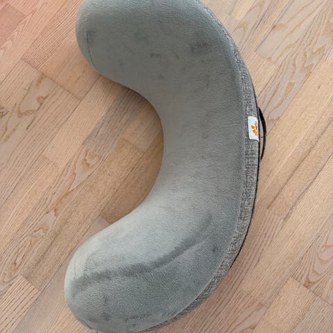 Nesten ubrukt ammepute fra ergobaby. Dette er en fast og god pute, trekket kan tas av og vaskes og det er håndtak som gjør den lett å flytte rundt på.