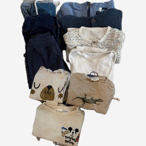 Selger pent brukte klær etter min sønn i str 74. Her er litt forskjellig merker som name it, lindex, hm,reflex,kappahl og i style. Pakken inneholder 5 body,2 pysjer, 1 sommerdrakt, 4 gensre, 5 bukser. Altså 17 plagg tilsammen. Noen av klærene har aldri vært i bruk, men lappen er tatt av.