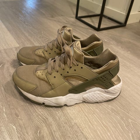 Nike Huarache sneakers i beige farge, størrelse 37,5 for dame. Joggesko laget i tekstil og syntetisk materiale med snøring for justerbar passform. Designet for komfort og hverdagsbruk.