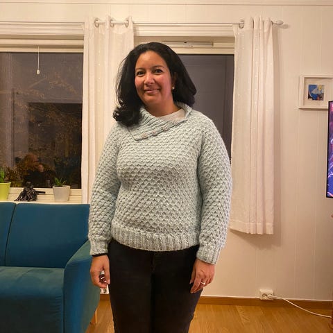 Ubrukt genser. Design Hanne Rimmen, fargen Caramel. Deilig ull