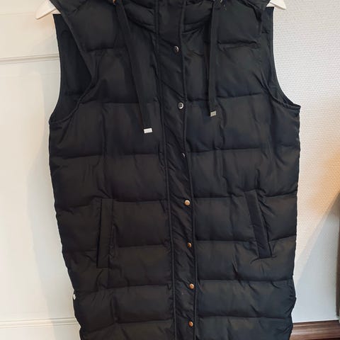 GAP S vattert vest i svart farge, designet for kvinner. Laget med isolerende materiale for ekstra varme. Har hette med avtagbar pelskant og knappelukking foran. Egnet for utendørs bruk i kjøligere vær.
