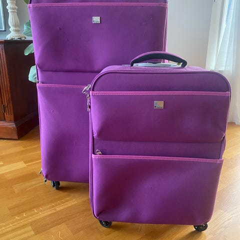 Sammenleggbare kofferter i 3 standard størrelser når de blir åpnet opp liksom, men kikkelig ty ynne og plassbesparende når man ikke bruker dem. Disser har jeg bare brukt en gang ved en anledning jeg måtte kjøpe ekstra bagasje for å komme hjem, men nå er d vare for mye hjemme. Håper d er noen som får nytte av dem.