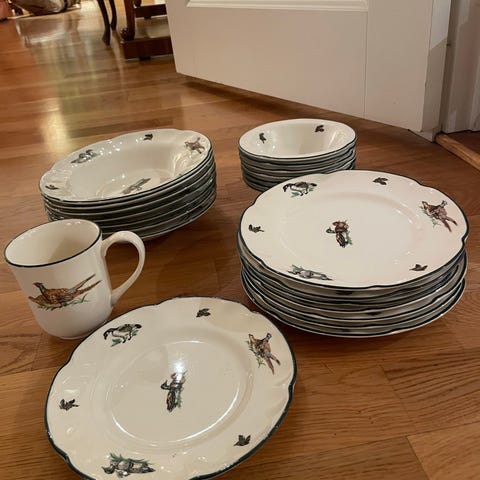 6 flotte middagstallerkener i god stand. Skinnende og pen glasur. Lite bruksmerker. Selges 250 pr stk