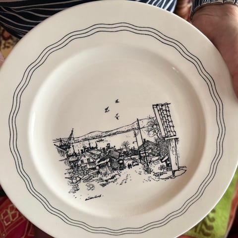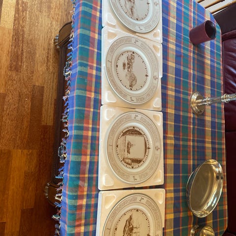 Carl Of Berlin 1985 porselen dekorativ tallerken med blå og gull dekor. Tallerkenen viser et motiv av en mann som arbeider ved en maskin. Diameteren og materialet er porselen. Egnet for dekorasjon og samling.