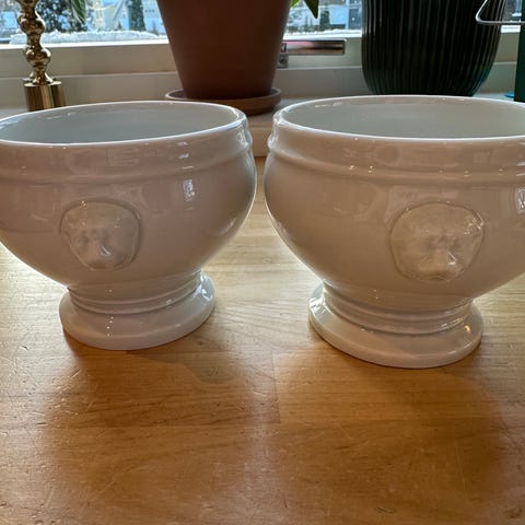 Flotte solide suppeskåler fra Pillivuyt m/løvehoder 50cl, i perfekt stand