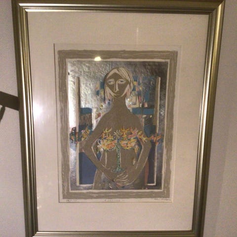 Innrammet H:63 cm B: 46 cm. Orginal vintage poster av Bjørn Wiinblad. I fin stand. Med tekst; Politikens Grafiske Særtryk - påskesærtryk April 1984 / Easter Art Work. Trykket er signert av kunstneren med rød tusjpåskrift; Til Victoria Bjørn Wiinblad i Oslo Mai 1999.