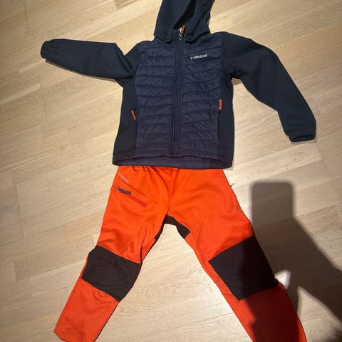 Buksen har hull på beinet, som ikke er fikset. Strikkene under føttene er i orden. Perfekt å ha i barnehagen. Selges derfor billig.