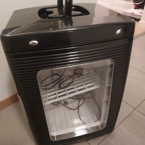 Selger et lite og praktisk DeskChiller minikjøleskap (4L) i fin blå farge.