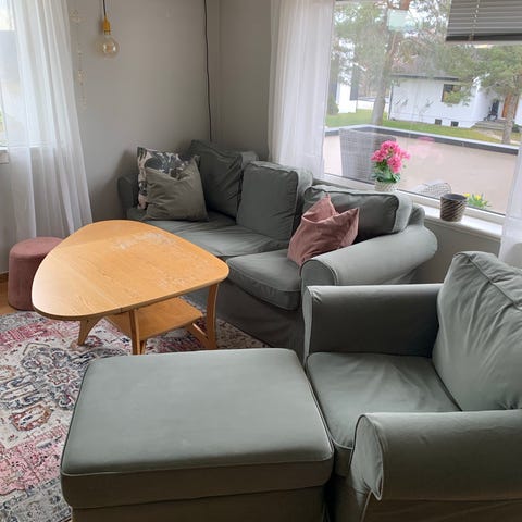 Selger mitt ektorp hjørnesofatrekk da jeg er lei av at alt er grått. Falma en del steder, men jeg har ikke tenkt noe over det. Kan være merker/skader, selges som det er. Koster 1995kr nytt, selges for 500kr. Pris satt. Kan sendes på kjøpers regning
