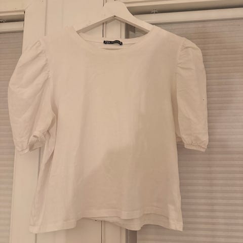 Zara T-skjorte i størrelse L for kvinner, hvit farge. Laget av bomullsmateriale. Enkel design med rund hals og korte ermer.