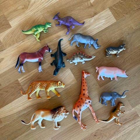 Pent brukte dyrefigurer. Selges samlet for 90kr