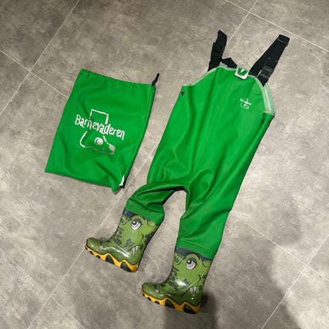Regnbukse med påsveisede gummistøvler! 💚💚