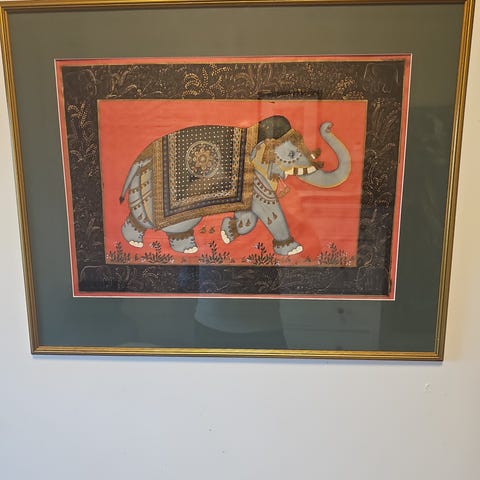 Disse 2 bildene ble kjøpt i India for mange år siden og har aldri hengt framme. Jeg vet lite om dem, men regner med at de er malt for hånd. De har flotte farger og er malt på et tynt stoff. Lurer på om noen kunne være interessert i å kjøpe dem, og pris blir vi enige om. Kan sendes med PostNord til 69 kr.