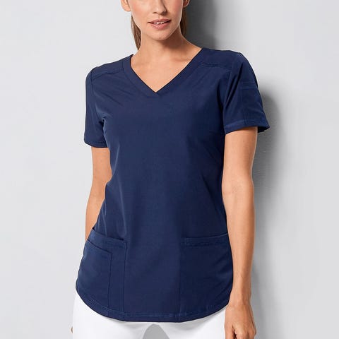 Fin lyseblå bluse med kort erm, dobbelt stoff foran, litt sånn tynt fint chiffon foran.