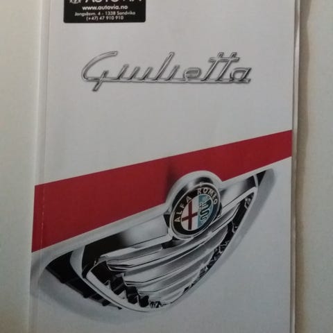 Bilbrosjyre Alfa Romeo Giulia 2020, 96 sider, format 30x24 cm på tykt papir, engelsk tekst, meget god stand, kr. 250,- + porto