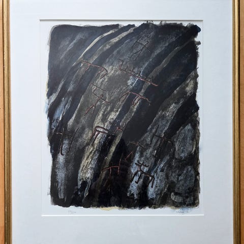 Litografi med metallpreg. "Sol og regn". Variant, no. 9/26. Signert nede til høyre. Motivmål: ca. 48x33 cm.