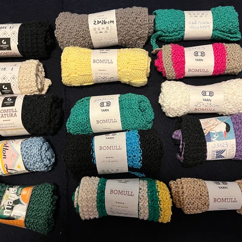 Pris pr. vaskeklut kr. 50.- 1 sett med 2 stk kluter og 1 håndkle kr. 175.-