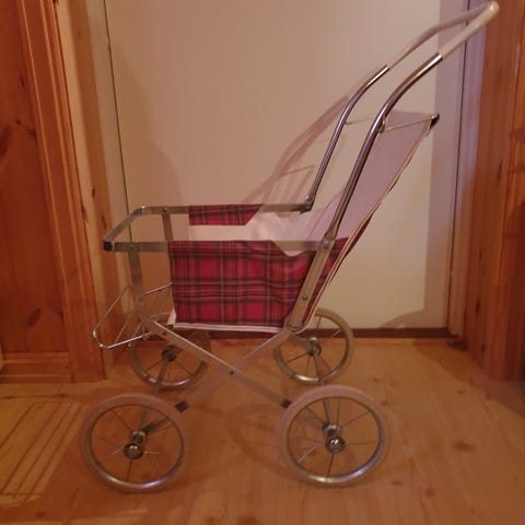 Retro liten dukkevogn / dukke vogn med dyne og pute selges.