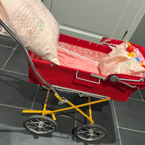 Retro liten dukkevogn med dyne og pute selges.