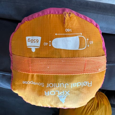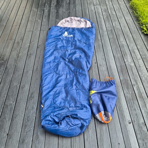 Soveposen er lett i vekt (650 g) og enkel å pakke sammen – ideell for barn som skal bære litt selv. Den er pent brukt, uten hull, flekker eller skader. Oppbevaringsposen følger med.