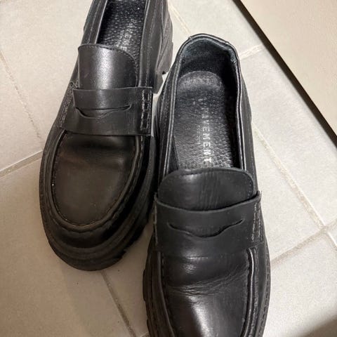Stockholm Design Group. Trendy penny-loafer svarte skinnsko . Må hentes