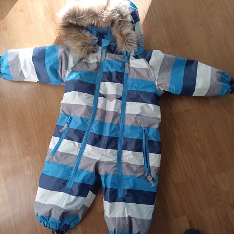 Selger en vinterdress fra reflex som har blitt brukt som reserve dress her i hus. Glidelåser fungerer som det skal. Dressen er fortsatt varm og god. Den er noe slitt nederst på beina som vist på bilde. Jeg har lappet to hull på dressen. Den har også en flekk på rumpa.